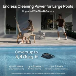 Enjoy up to 11 hours of surface cleaning or 5 hours on floor/walls with a single charge. Perfect for pools up to 360 m² without interruptions!