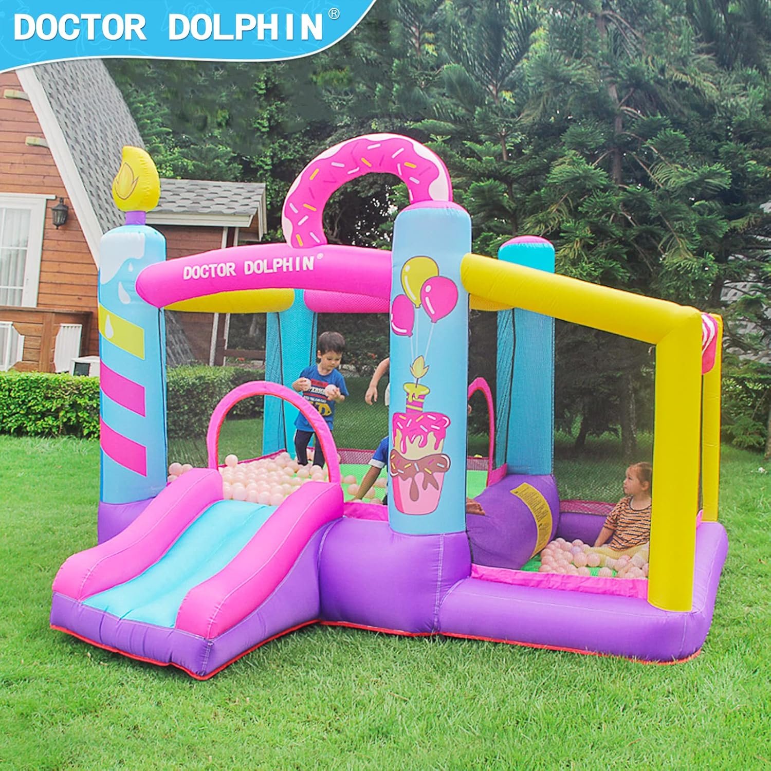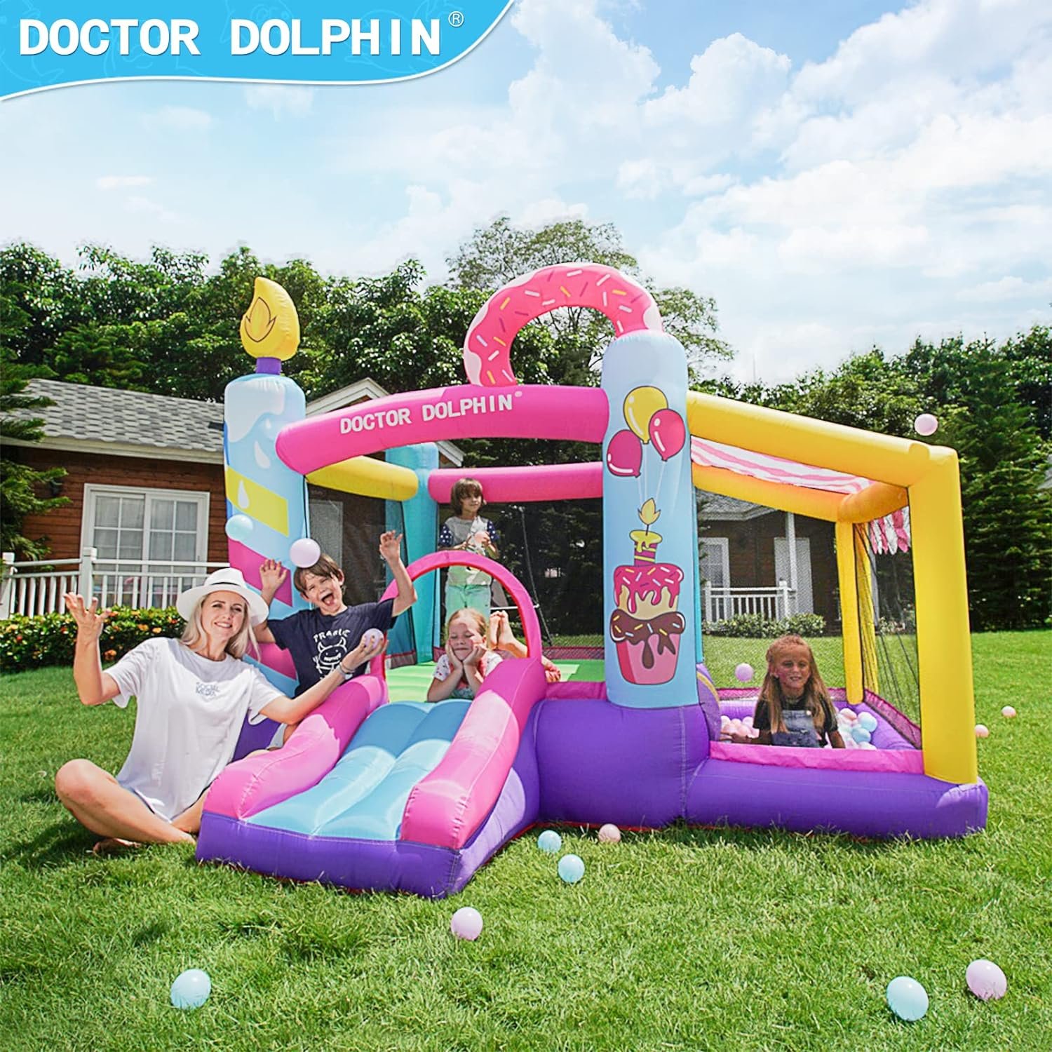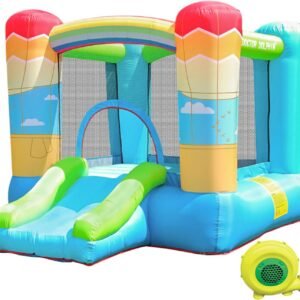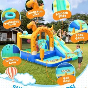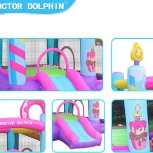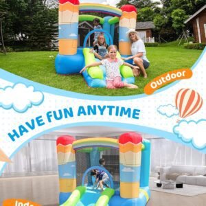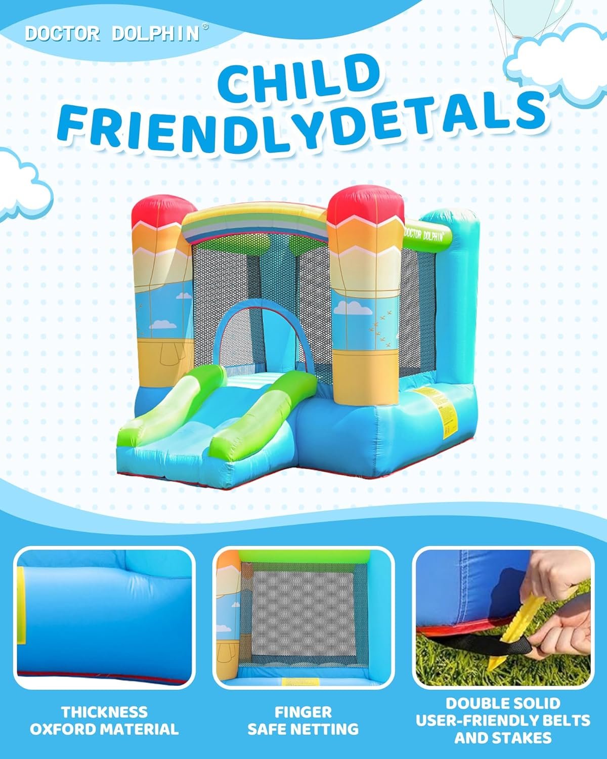 - Diseño infantil: nuestra casa de rebote de diapositivas es el mejor regalo de cumpleaños para tus dulces. El arco iris está arriba, y los globos de aire caliente están a ambos lados de tu hijo.