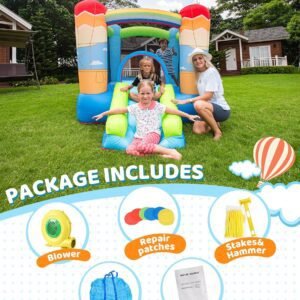 - Kit de accesorios perfecto: cada artículo está equipado con un soplador de aire de 350 W, bolsa de transporte, algunos parches de reparación y estacas para césped. Todos los accesorios están preparados para ti, ahorrando tiempo para ir a la tienda.