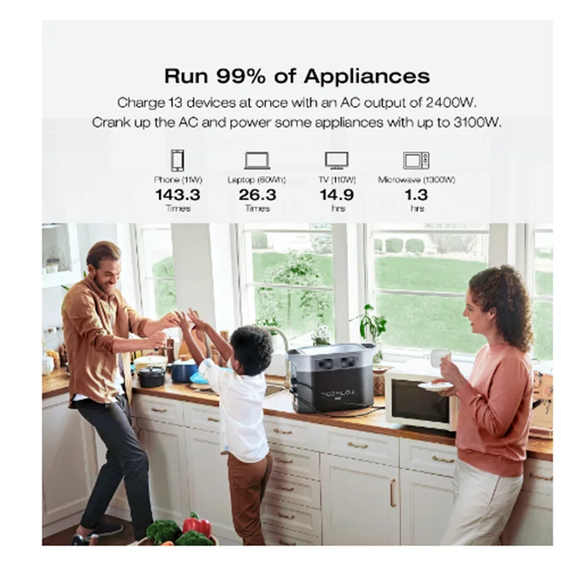 Up to 3100W output (X-Boost), powers up to 13 devices at once.