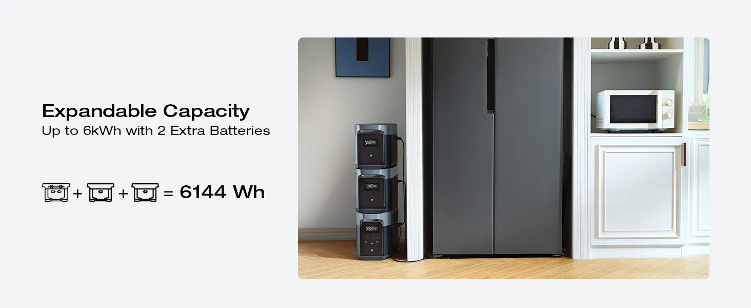Expandable from 2 to 6kWh, perfect for home backup, travel, and emergencies.