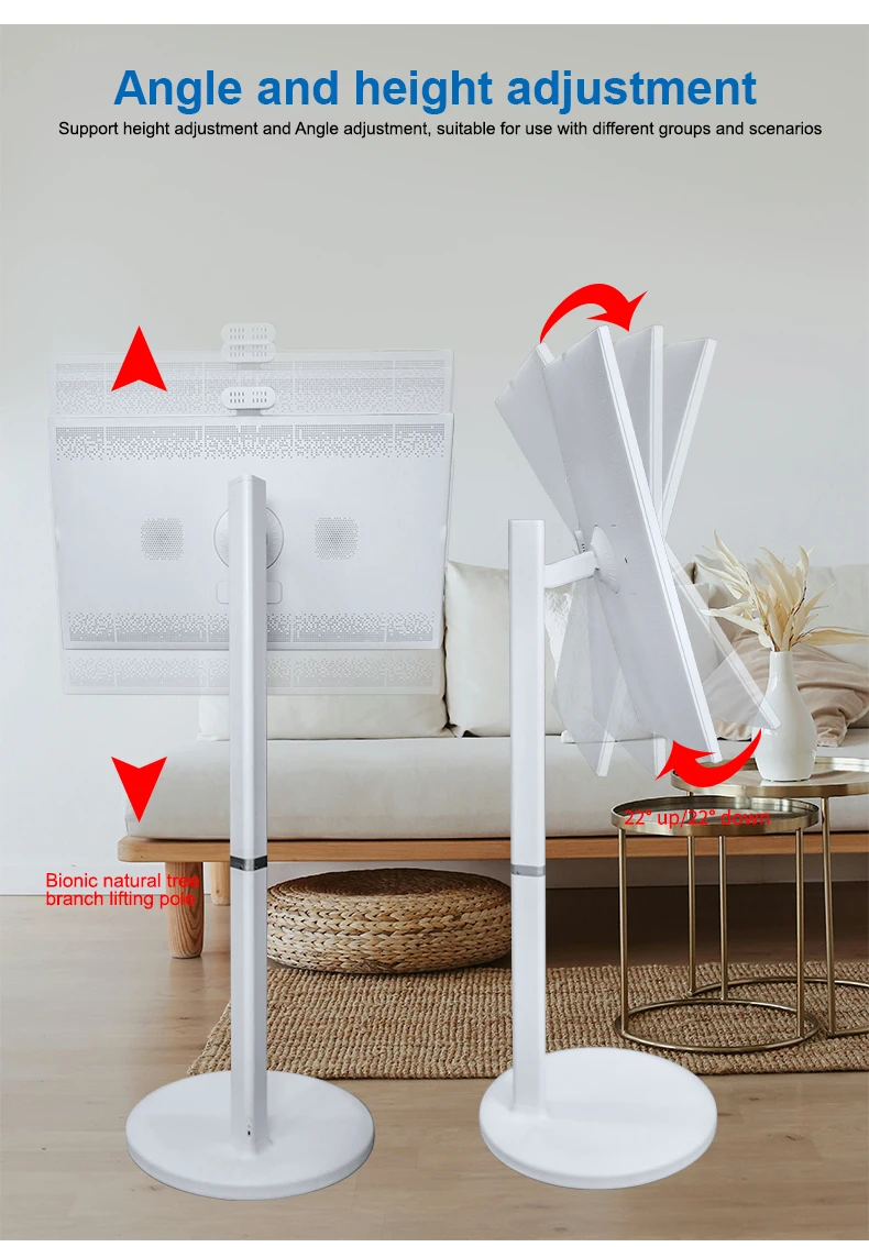 The screen can be adjusted by moving it up and down, rotating it left and right, and tilting it at various angles to provide a better viewing experience. This allows you to watch videos comfortably anywhere, whether you’re sitting or lying down.