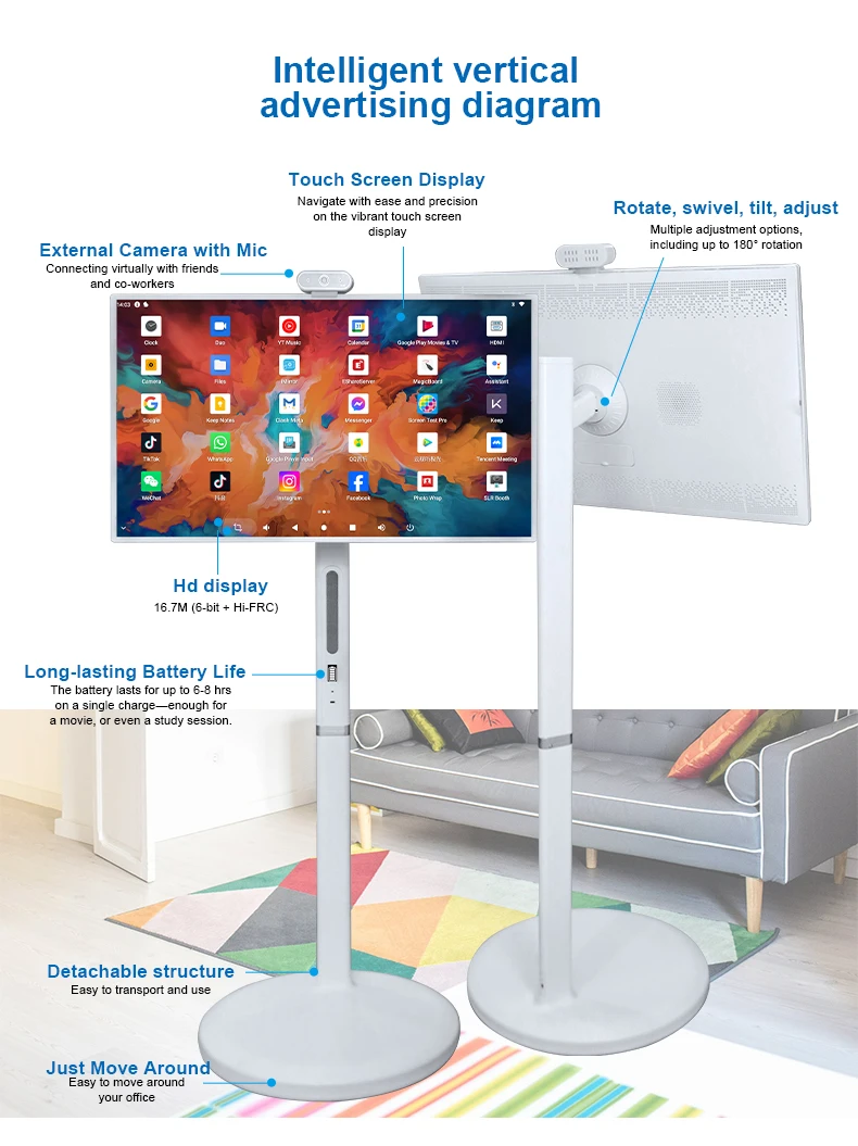 The 32-inch touchscreen features a resolution of 1920×1080 pixels, delivering a high-definition visual experience. In addition, we provide a 48-megapixel external HD camera for each smart mobile display.